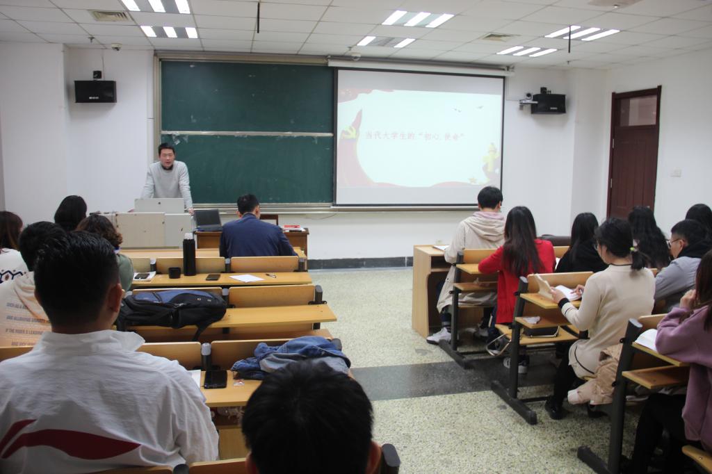 学生党支部于JC614教室开展 “‘不忘初心,牢记使命’主题教育——支部书记讲党课”活动,马克思主义学部党委副书记、政治与金沙娱乐