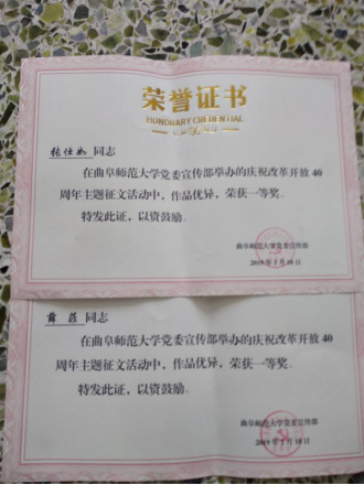 在金沙娱乐 党委宣传部组织的庆祝改革开放40周年主题征文比赛中,金沙娱乐 积极组织,学生踊跃参加,共有220篇征文提交金沙娱乐 。经过金沙娱乐 评审,薛菲、张仕如2荣获一等奖,李明书、李雅洁等13名同学荣获二等奖,齐金枝、周玉莹等20名同学获得三等奖,他们在本次征文活动中真情流入、有感而发,其他参赛同学同样笔下生花。所有参赛者都将自己心中的曲园复兴与对改革开放的展望描绘尽致。