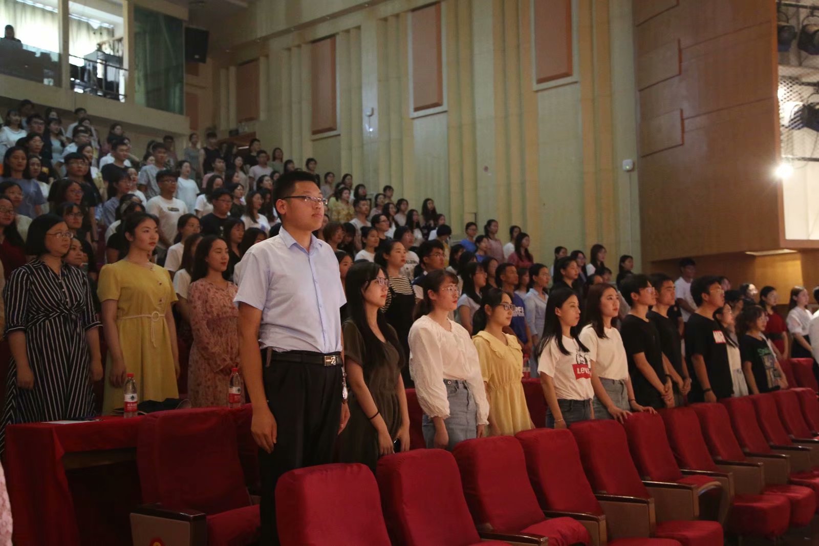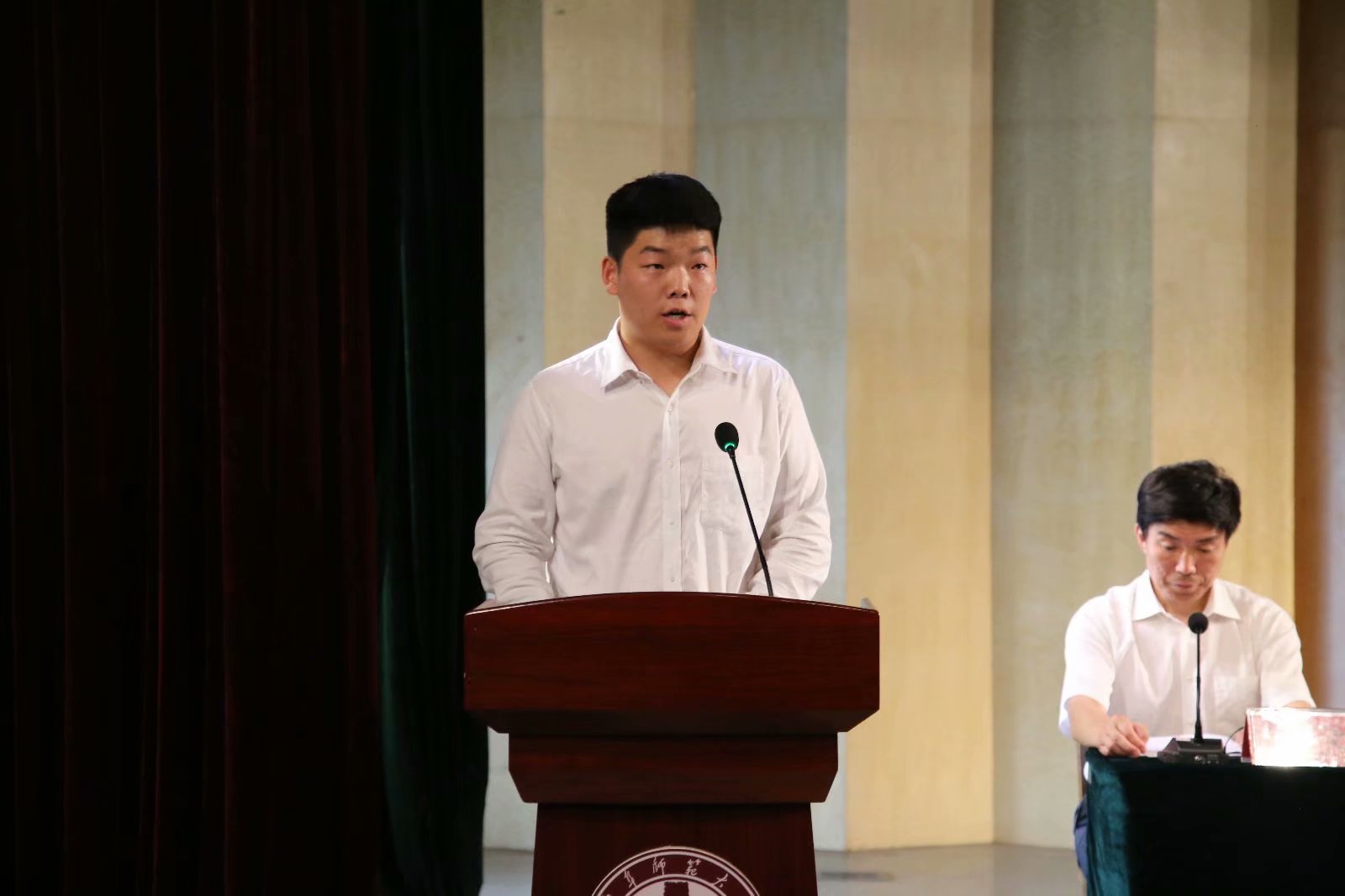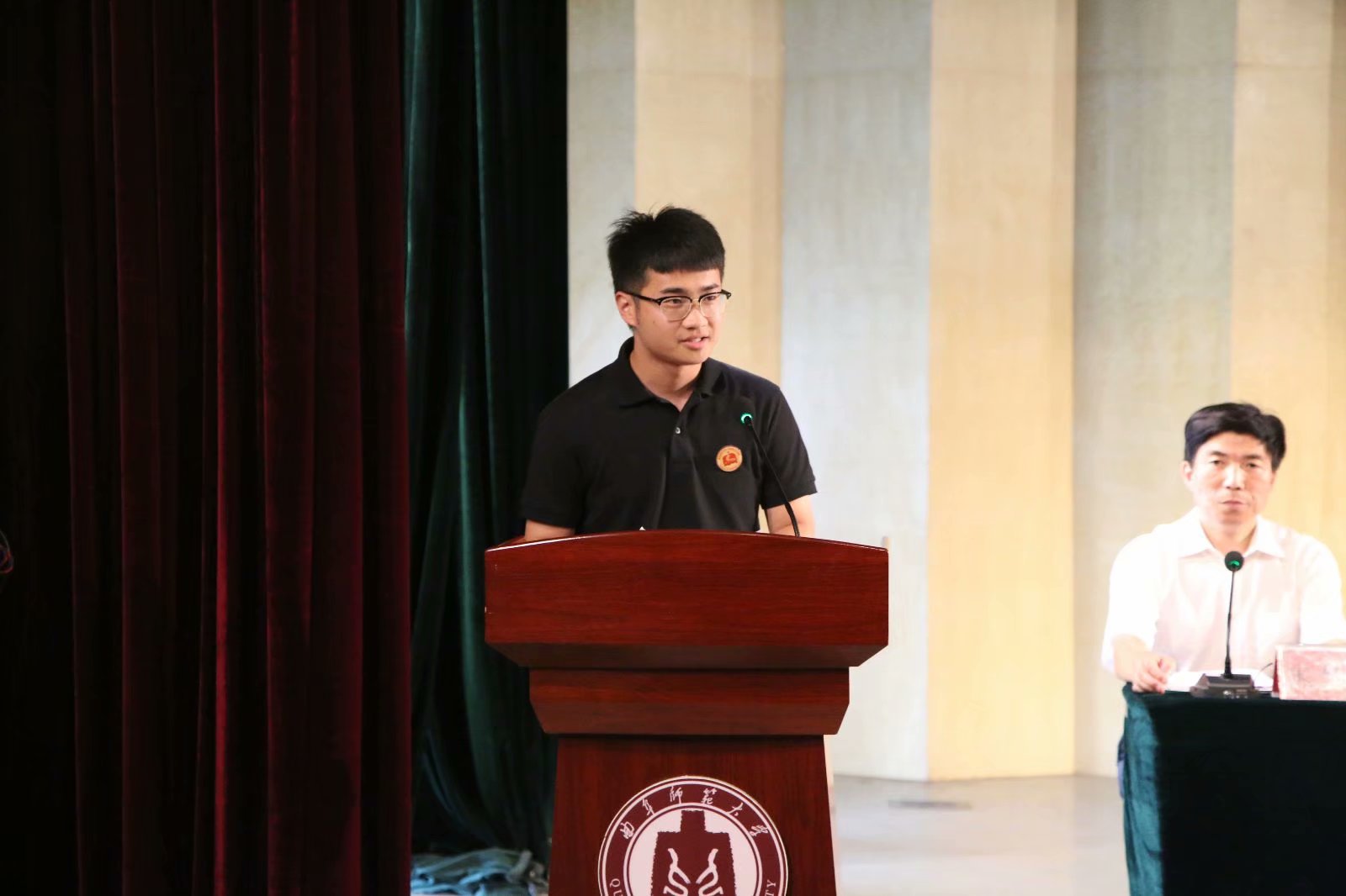 典礼进行中,毕业生代表王晨阳上台发言,为师弟、师妹们分享大学四年学习工作心得、树立榜样,鼓励大家努力学习,完成梦想;学生代表王星普上台发言,表达对师哥、师姐的不舍之情以及将继续传承他们学习工作精神的决心。