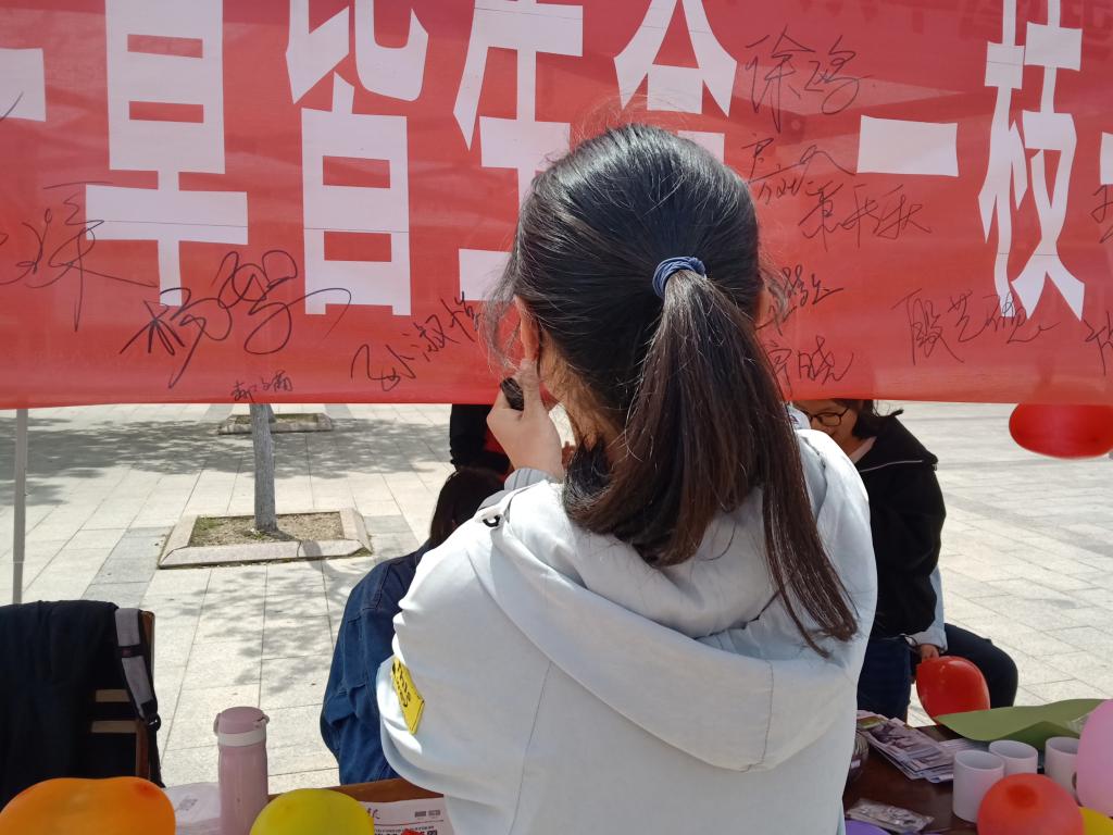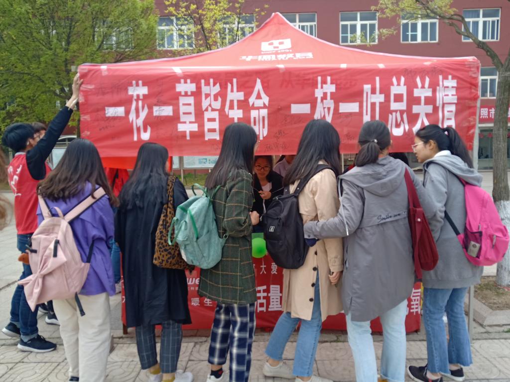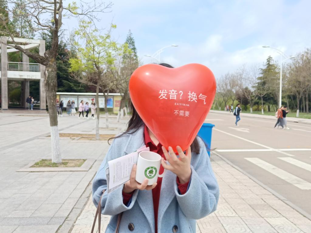 义工服务大队为响应大爱清尘的号召于D楼前成功举办“肺活量大挑战之为生命充氧”活动。