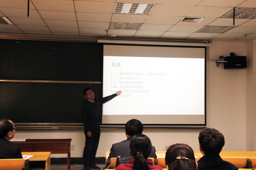 本次交流会由青年教师李培挺分享他在台湾朝阳科技大学管理金沙娱乐