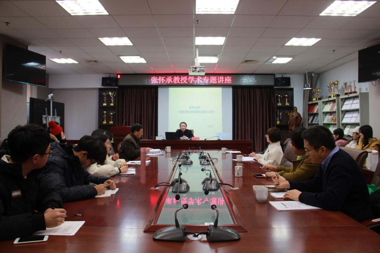 首先王维先院长向在场师生介绍张怀承教授的个人履历及学术成就。随后张怀承教授从阳明后学的启蒙、王学的产生、玄学和佛学发展的方面提出了自己对传统伦理道德独到的见解。张怀承教授认为,从中国传统伦理道德发展角度看,玄学和佛学在某种意义上都可以说是对伦理道德本体根据的理论探求;任何一种伦理学说都自信自己具有最普遍的适用性和合理性,只有这样,才能建立自己学说的理论信心,而伦理道德则强调的是应然。张怀承教授教学功底深厚,深入浅出的高深教学技巧,激发了同学们的思考。