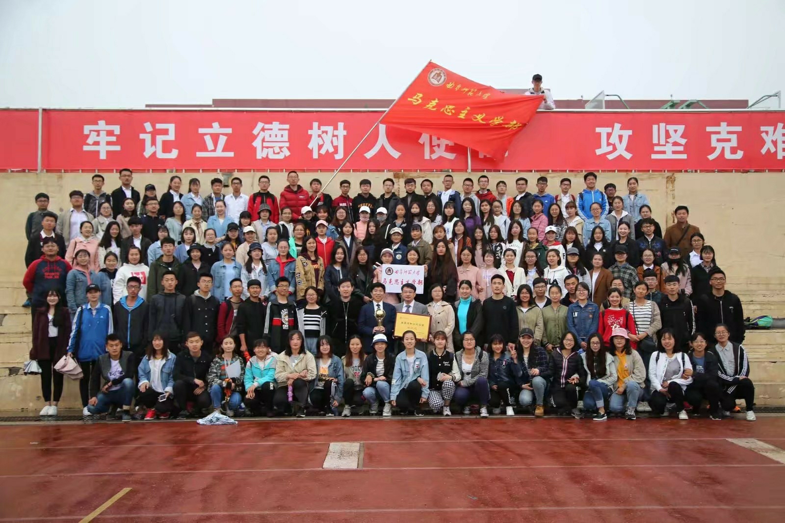 学部全体运动健儿努力拼搏,经过两天的激烈角逐,学部李春红分别荣膺女子3000米和女子1500米两项桂冠;王聪聪在女子100米栏中斩获第一名;女子接力赛代表队在4×400米接力赛中取得第一名的优异成绩;趣味赛代表队在男女子混合投篮、女子踢毽子和男子齐心接力项目中均夺得第一名;杨小璐、游兴月在男女子400米栏中均荣获第二名佳绩;刘金光、庄桂越在男子110米栏中分别荣获第二名与第三名;孙亚楠在女子组200米决赛中荣获第3名;郝霖玉在女子400米中荣获第三名;女子颠足球项目组在比赛中荣获第三名。学部老师们也纷纷走出课堂走进赛场,为学部荣誉奋力拼搏。经师生奋力拼搏,马克思主义学部荣获体育道德风尚奖并以学生组总分第三的佳绩圆满收官。
