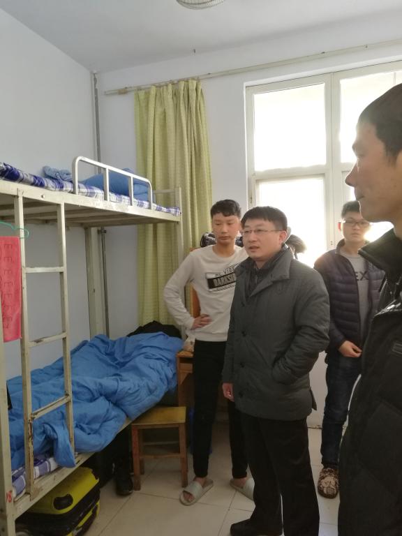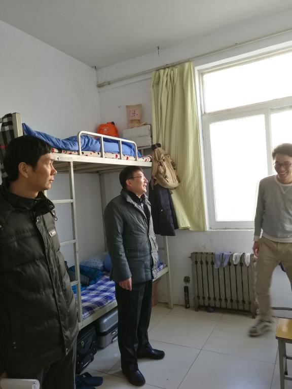 领导老师就学生宿舍的安全问题以及考试周期间学生的生活情况展开视察,了解学生生活面貌。