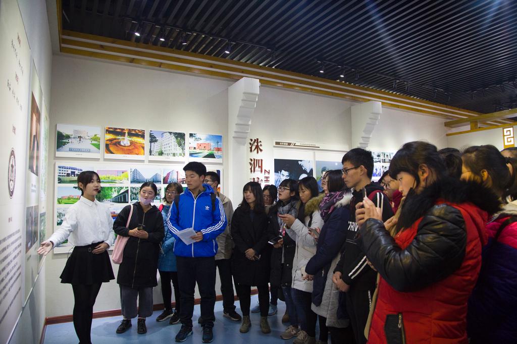 校史馆讲解员就“杏坛春秋”、“学用相长”、“美服甘食”、“依仁游艺”、“时易情笃”等板块详细介绍了金沙娱乐