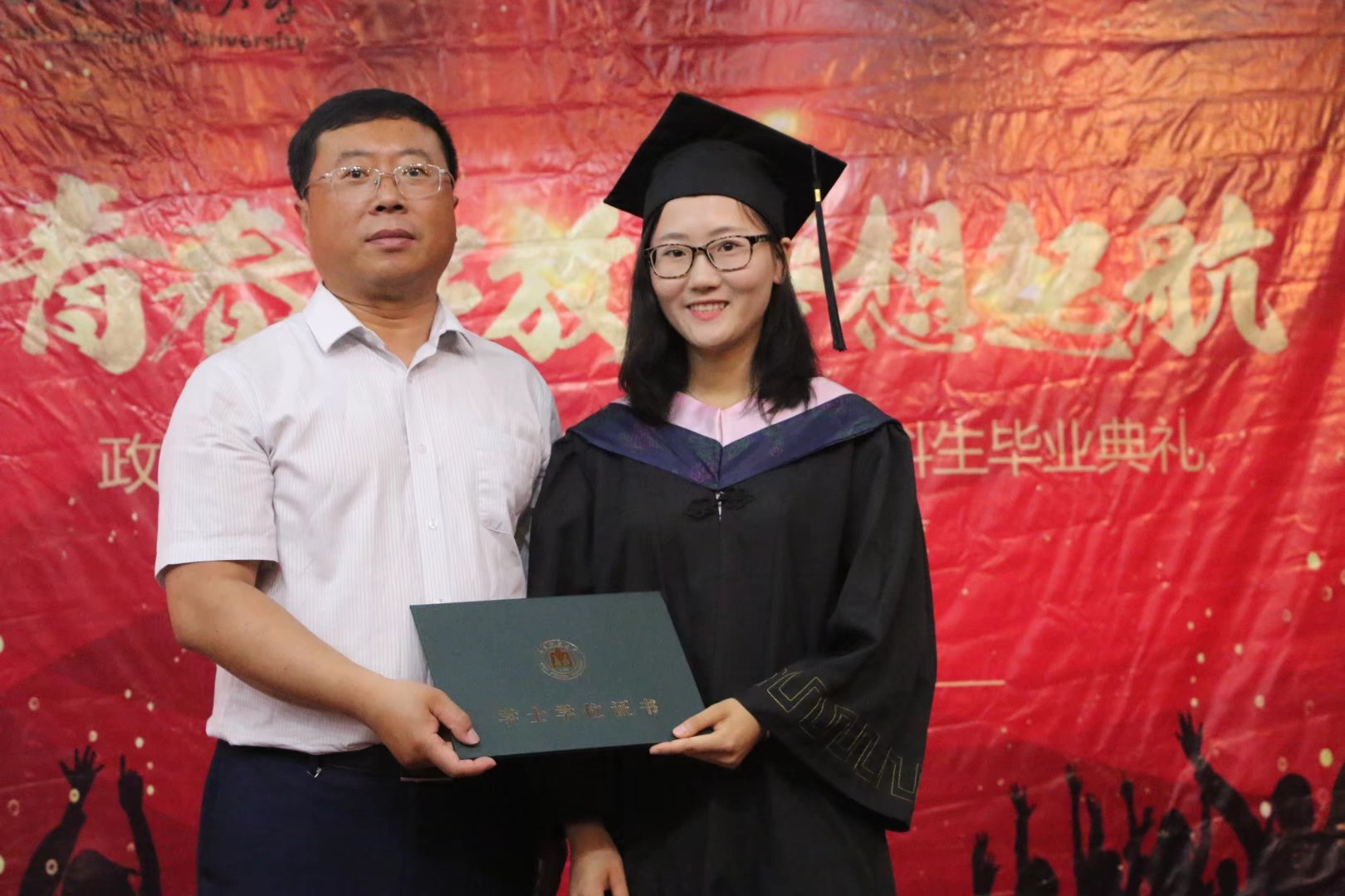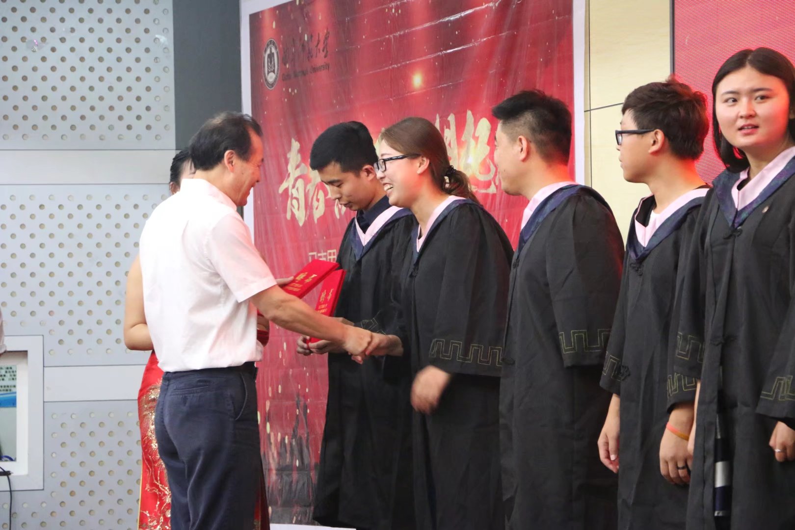 学部主任李安增在典礼上宣读关于授予2017届本科生学士学位的决定。并与王维先教授分别为马克思主义金沙娱乐
