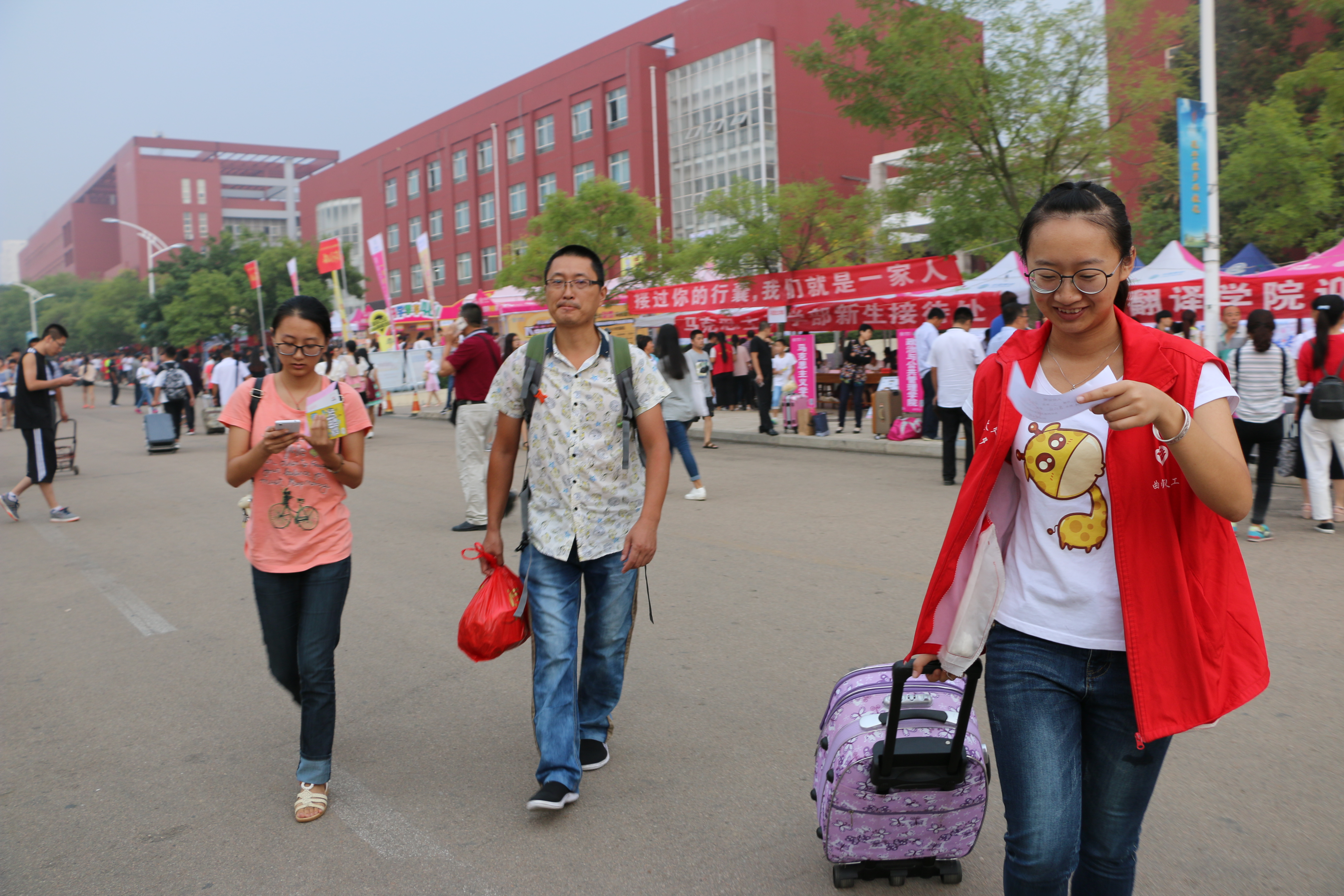 办公室、学生工作处等部门负责人以及张立兴、李安增、王维先、刘进、陈敏、张华、韩凯辉等学部领导老师亲临现场指导工作,看望新生和家长并感谢迎新工作人员的辛勤付出,2016级辅导员陈敏更是全天候陪同迎新。