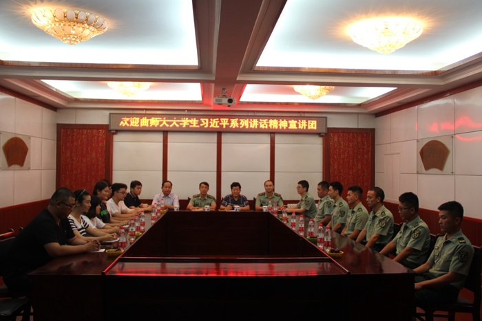 7月19日,我部大学生习近平总书记系列讲话精神宣讲团一行在学部党委书记张立兴、副书记刘进的带领下走进中国人民解放军72395部队(曲阜)进行宣讲。