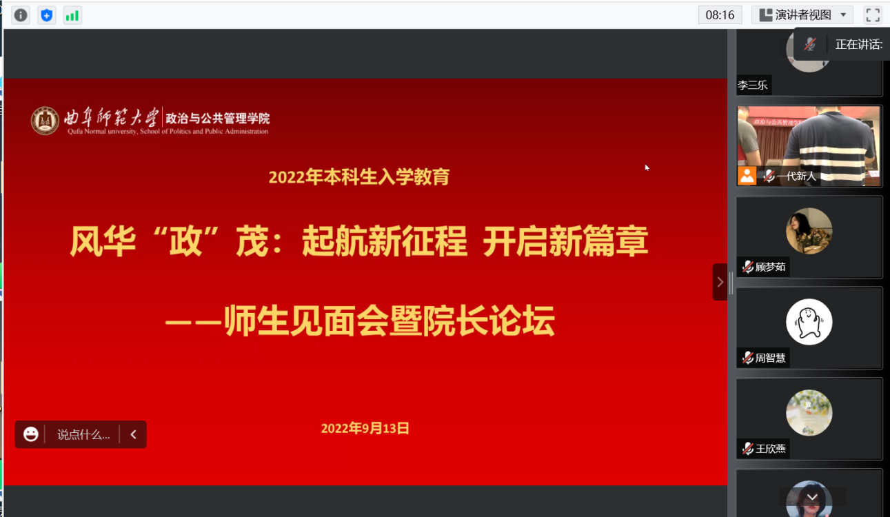 学生工作介绍并向同学们提出大学四年不负父母、不负自己、不负韶华的美好期望,至此,本次师生见面会暨院长论坛圆满结束。
