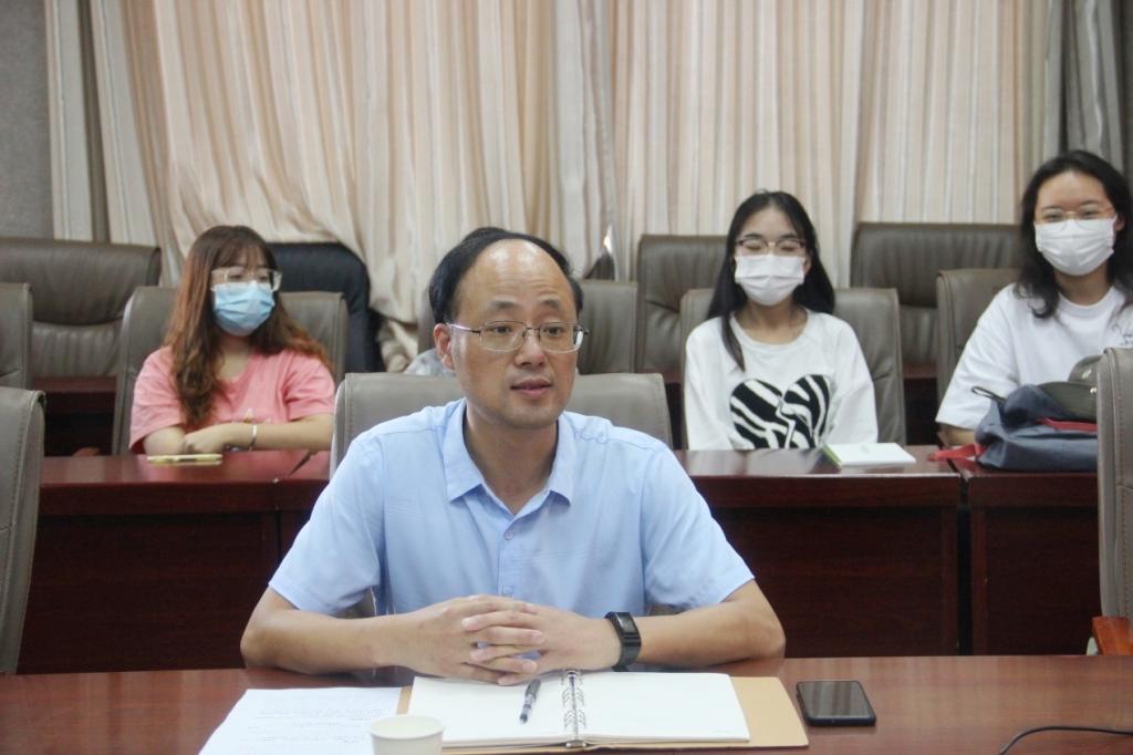将为同学们提供良好的学习平台和成长环境,提供继续深造与学术交流的机会。他强调,在研究生学习中要夯实基础,充实自我,拒绝“躺平”,高度重视论文写作,规范学术行为,维护学术道德。其次,向大家介绍了研究生培养过程的相关要求。为同学们解读研究生论文预开题、正式开题、中期考核、论文检测、盲审、预答辩、正式答辩等培养流程的注意事项和具体要求。鼓励同学们积极参加政研论坛、学术会议,拓展思维视野,夯实专业基础。最后,从意识形态安全、人身安全、人际关系交往等多个方面引导同学们坚定政治立场,筑牢思想防线,树立安全意识,培养良好的人际关系。