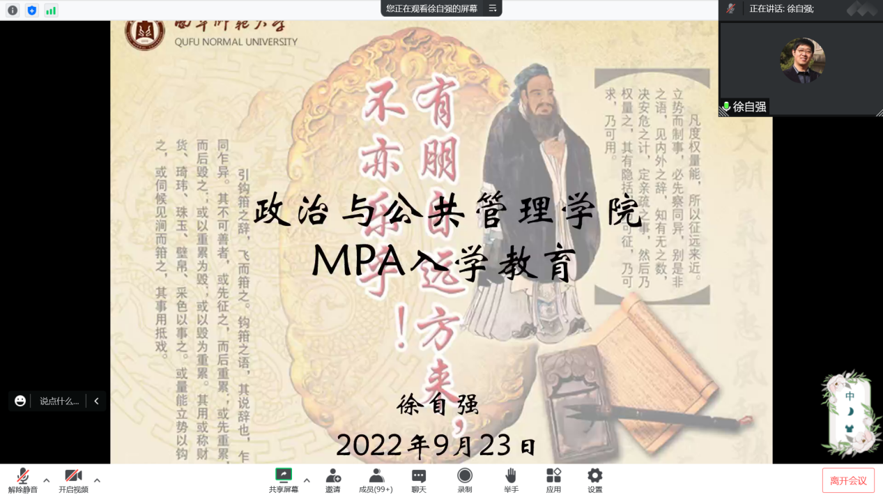 在“腾讯会议”平台线上召开2022级MPA研究生入学教育大会,金沙娱乐