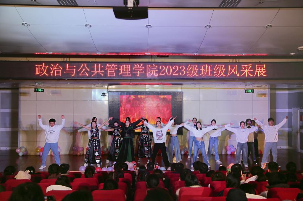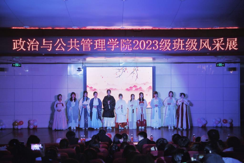 政治一班以“百花齐放春满园,民族团结政当时”为主题首先展示;政治二班的主题是“致青春,致未来”,哲学班的主题是“韶华舞流年”。三个班通过民族舞、歌曲、现代舞等节目形式展现班级活力和风采。研究生会、社团、学生会文艺部带来了朗诵、古代礼仪走秀、说唱节目。活动最后以《相亲相爱一家人》结尾,引起全场共鸣。