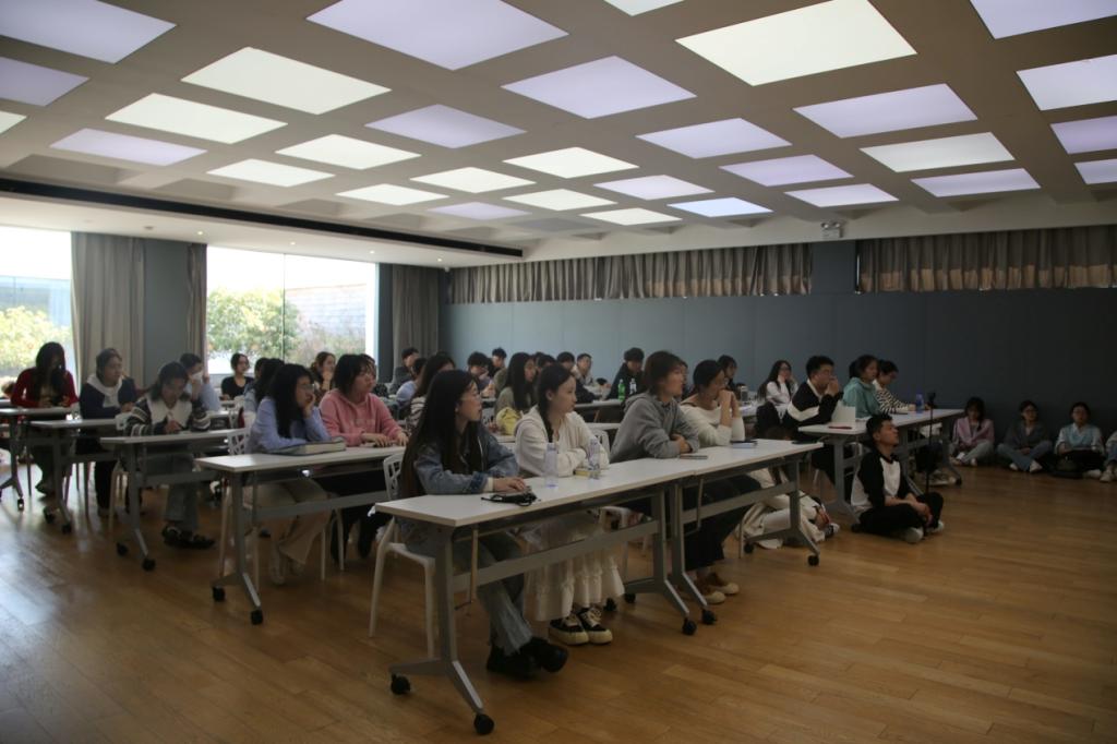 学子抵达白鹭湾美术馆小镇,对白鹭湾艺术馆小镇进行了参观。随后,众人齐聚白鹭湾党建中心演播厅,由山东省白鹭湾有限公司董事长徐群德为同学们介绍了白鹭湾艺术馆小镇的新型社区发展理论,他围绕自然之美、艺术之美、生活之美、生命之美四个方面展示了白鹭湾的品牌形象及设计理念,介绍白鹭湾小镇是通过艺术化生活、文化旅游与现代农业的融合、生态保护与可持续发展、社区文化与产业发展以及精品化与差异化发展等多个方面,共同构建的一个具有独特魅力和文化深度的新型社区。