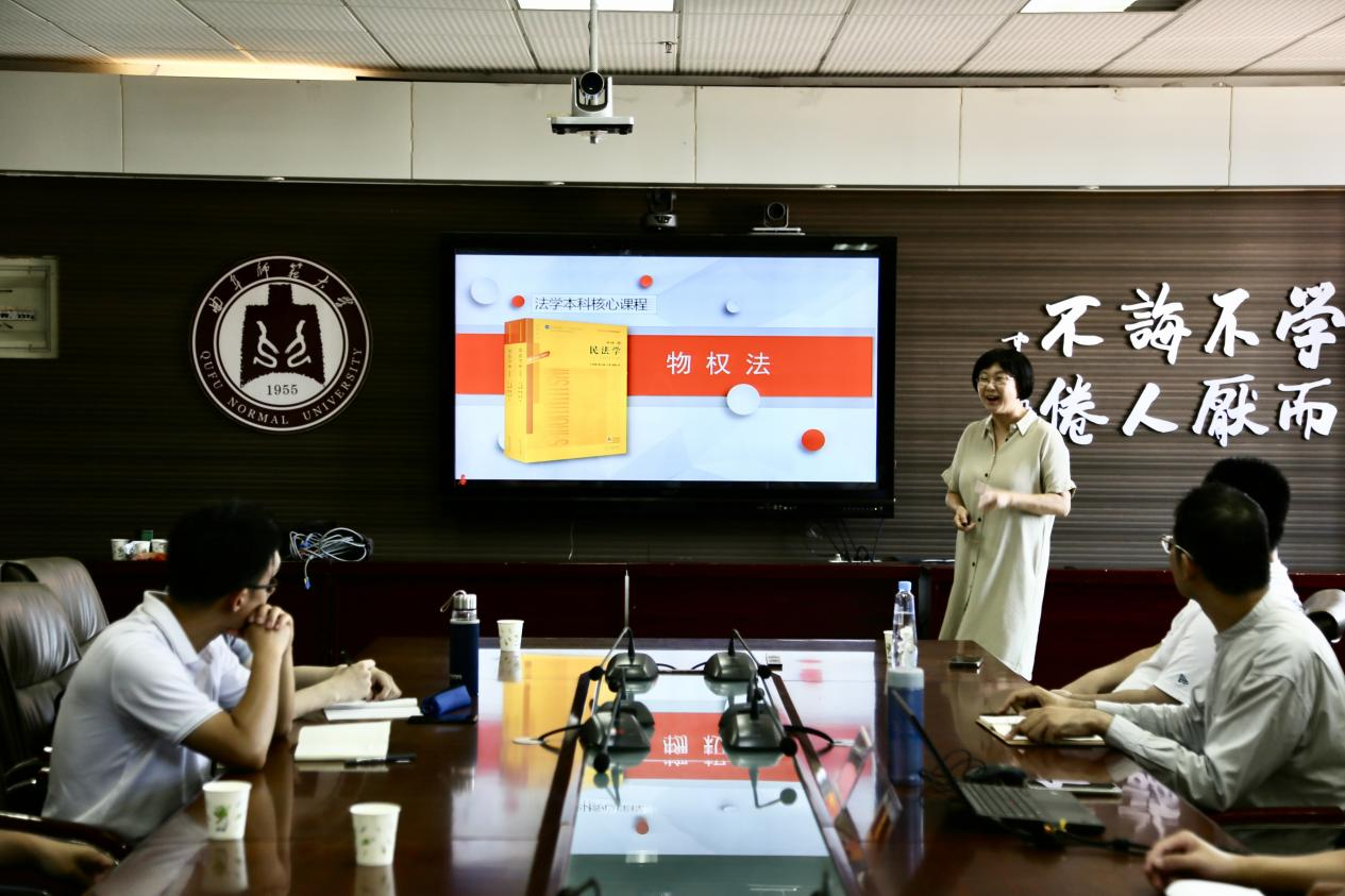 指导表示了热烈的欢迎。彭奕菲老师用20分钟左右的时间展示了《物权法》教学设计汇报,并从引导案例、课程定位、教学目标、教学内容、教学创新模式等方面进行了分析和讲解,结合自己的参赛课程和心路历程,从多方面进行具体分析指导。在互动环节,多名教师与彭奕菲老师进行交流,并提出了自己的见解。会议最后,院长助理宋健副教授对本次经验交流会进行了总结,对彭奕菲老师的到来以及精彩的报告致以诚挚的感谢。