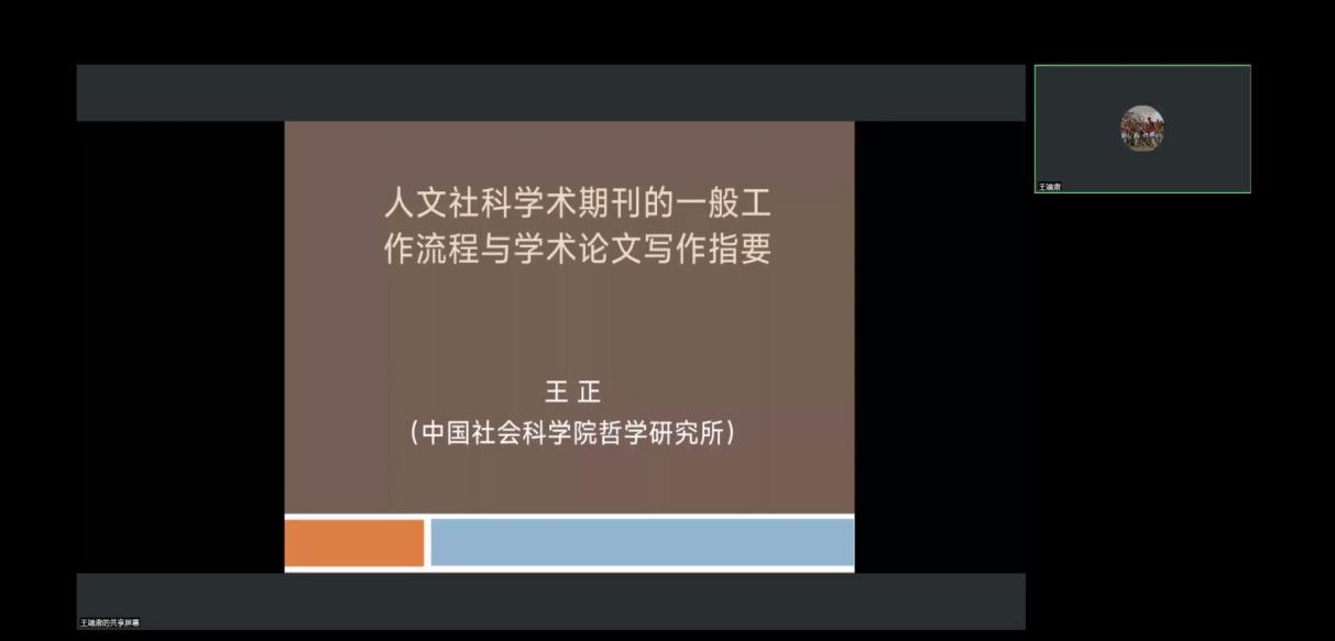 随后,王正教授结合自己作为期刊编辑的经验,从人文社科学术期刊审稿流程、学术论文写作要点两个方面做了重点讲解,并对论文写作过程中的要点进行了分享。最后,王正教授希望大家在写作过程中,要对论文精心打磨,要广泛吸纳各种研究成果,注重逻辑关系,敢于推翻重来。意尤其要注意格式规范。在提问环节,参会教师也与王正教授就论文的投稿等问题进行了交流。