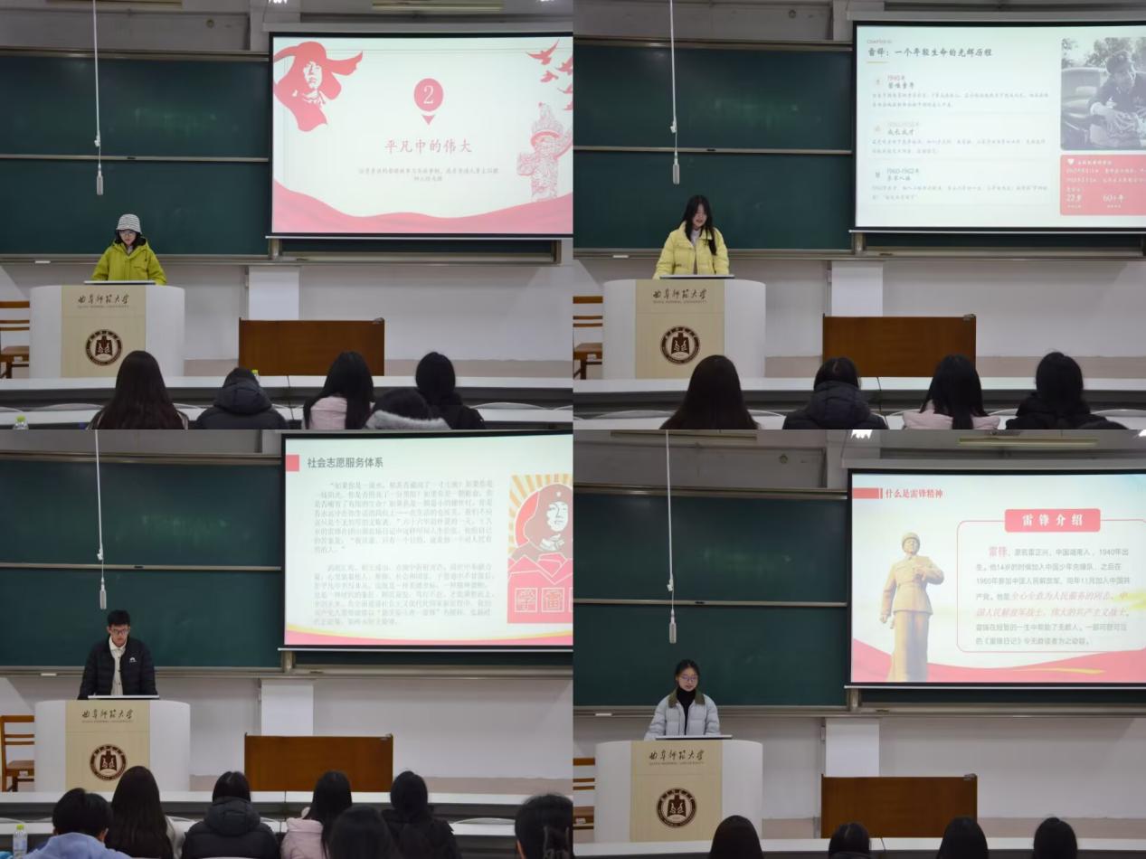 “学习雷锋精神”主题宣讲活动于A302成功举办。本次宣讲由弘道宣讲团主办,吸引了众多同学积极参与,旨在通过思想交流与风采展示,深化对雷锋精神的理解与传承。