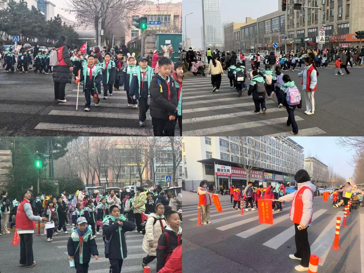 周边,化身“护学使者”。志愿者们分工协作,有序引导学生过马路、维护校门口交通秩序、协助接送家长规范停车,用耐心与坚守为孩子们的出行安全筑起一道坚实屏障,成为校园周边一道靓丽的志愿风景线。